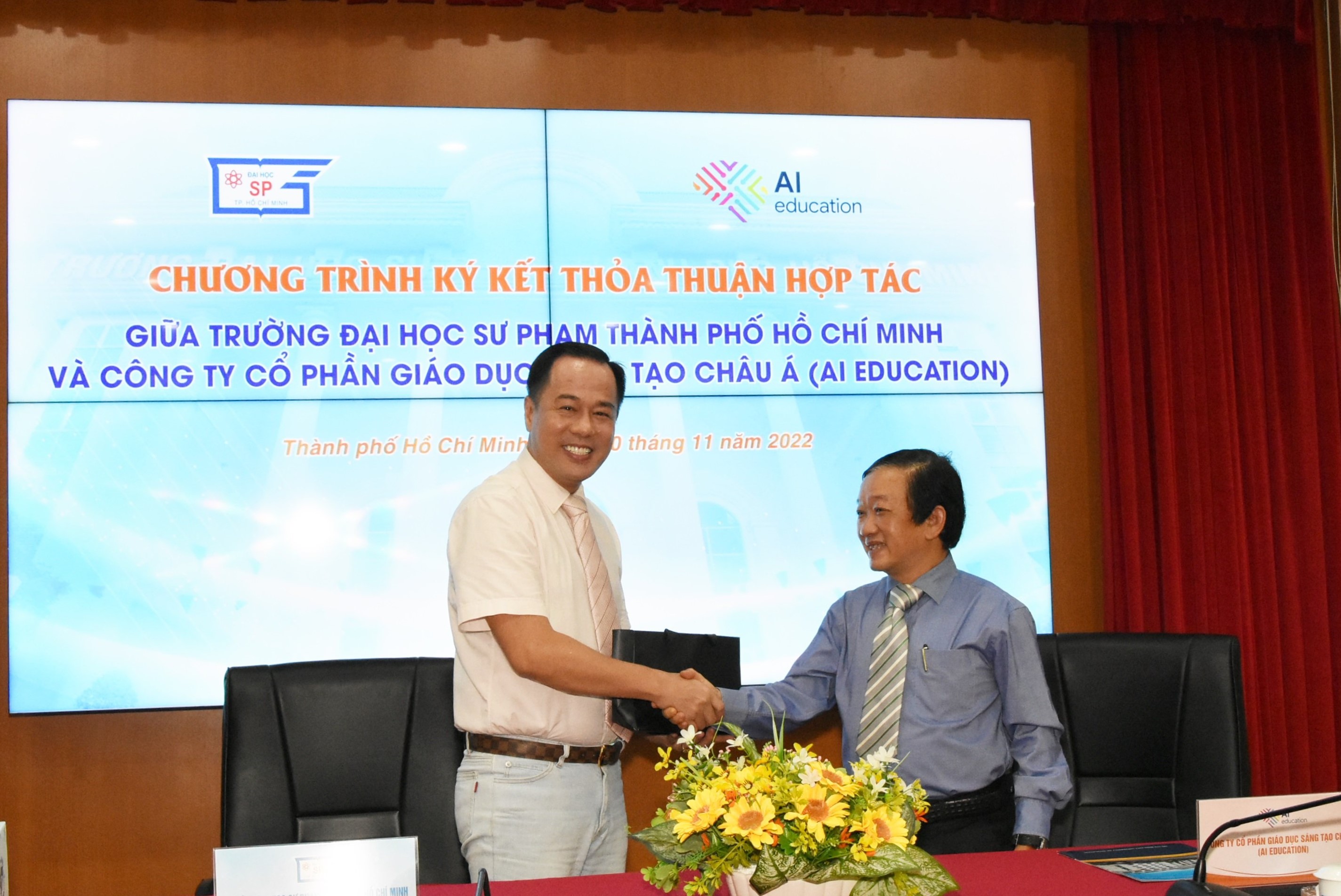 Ngày 10/11/2022 vừa qua, Trường Đại học Sư phạm Thành phố Hồ Chí Minh tổ chức Lễ ký kết Thỏa thuận Hợp tác (MOU) với Công ty Cổ phần Giáo dục Sáng tạo Châu Á (AI Education) với mục đích tăng cường áp dụng thực hiện chuyển đổi số trong lĩnh vực đào tạo. Đây cũng chính là cơ hội để giảng viên và sinh viên trong trường đại học tiếp cận sớm hơn với các hoạt động chuyển đổi số.