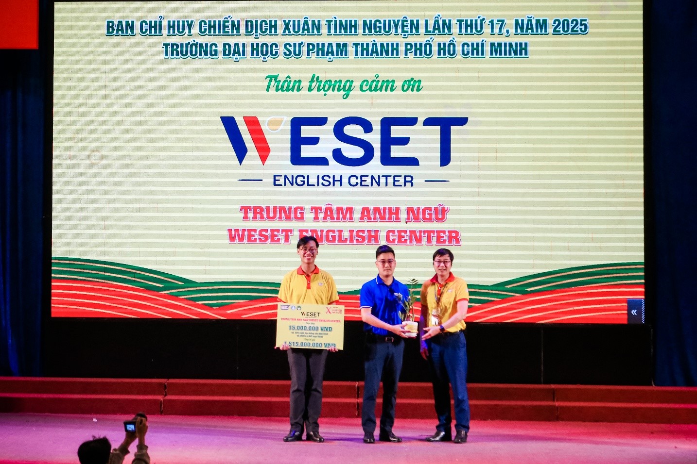 Cũng trong chương trình, Trung tâm anh ngữ WESET English đã trao tặng bảng tượng trưng tài trợ cho Chiến dịch với tổng giá trị tài trợ là hơn 1,5 tỷ đồng.