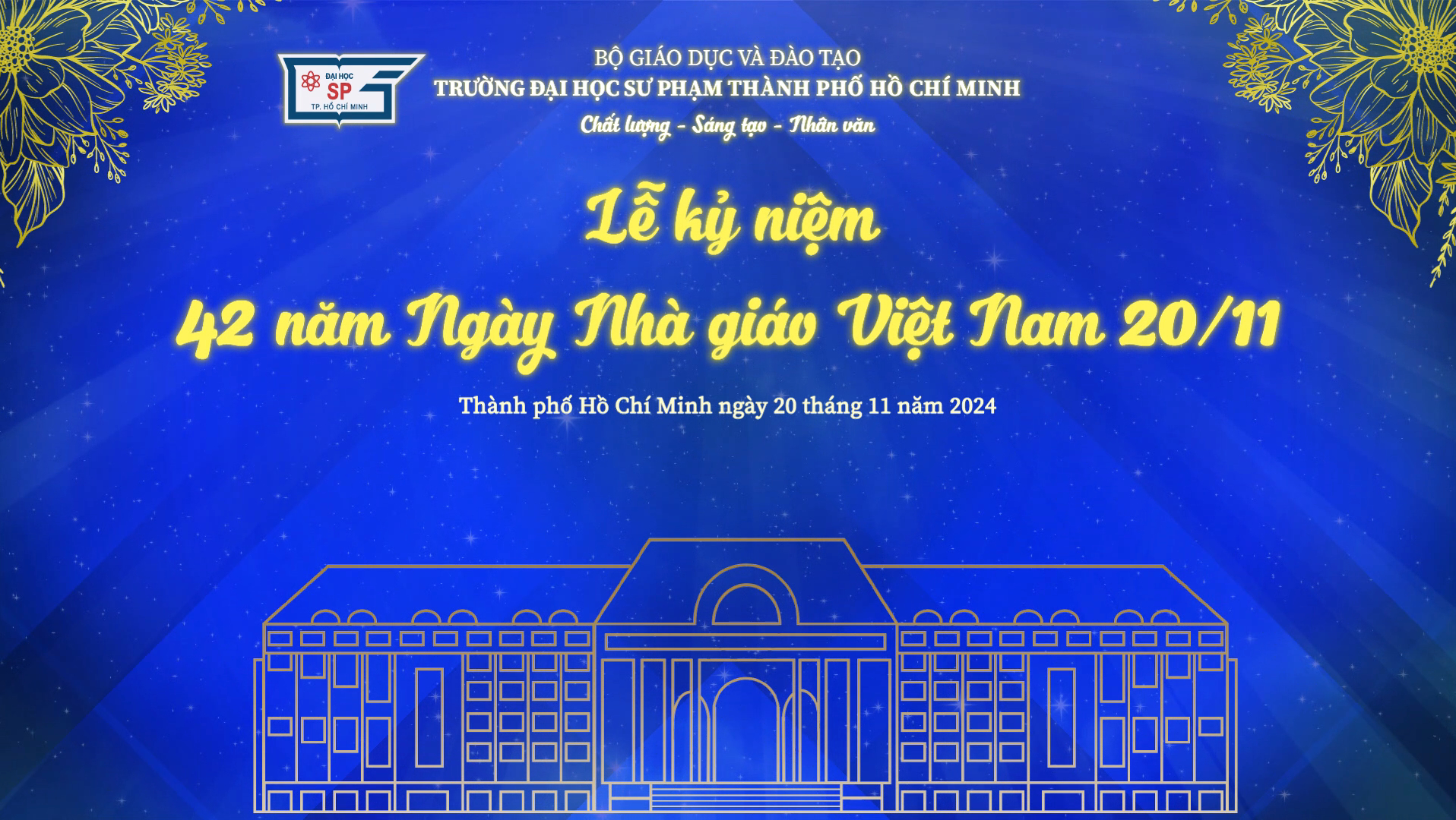Ngày 20/11/2024, Trường Đại học Sư phạm Thành phố Hồ Chí Minh đã tổ chức một buổi lễ kỷ niệm thật đặc biệt nhân dịp 42 năm Ngày Nhà giáo Việt Nam. Chương trình không chỉ là dịp để tri ân những người thầy, người cô mà còn là dịp để nhìn lại chặng đường phát triển của Nhà trường.