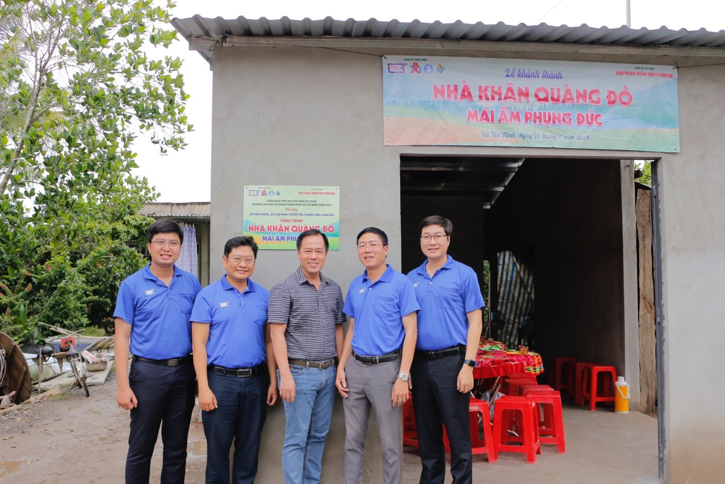 Trong dịp này, Trường Đại học Sư phạm Thành phố Hồ Chí Minh phối hợp cùng Hội trao niềm yêu thương đã tiến hành xây dựng và trao tặng một Nhà Khăn quàng đỏ - Mái ấm Phụng Đức trên địa bàn ấp Kênh Đứng, xã Tân Ninh, huyện Tân Thạnh cho em Nguyễn Đại Phong, sinh năm 2015.