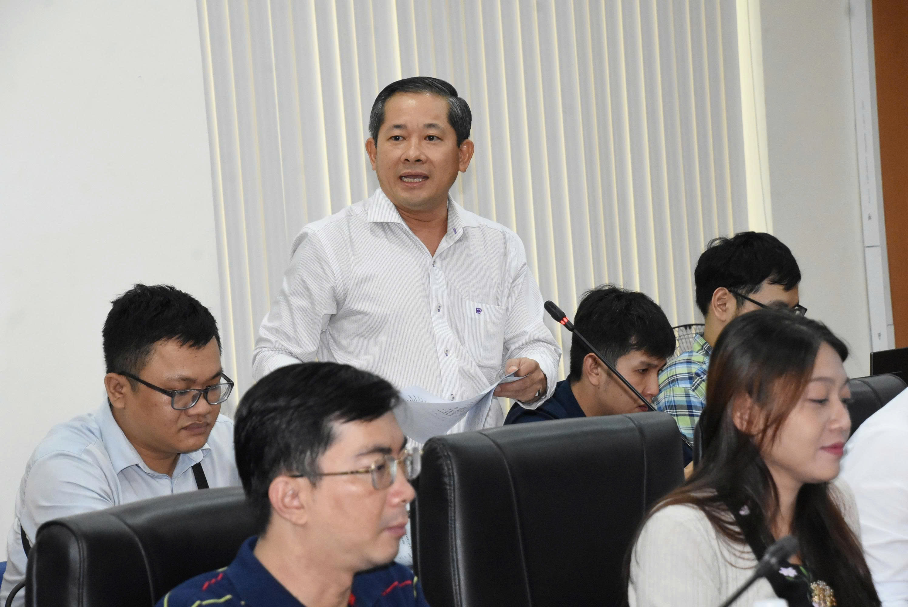 TS. Lâm Thanh Minh - Trưởng phòng CTCT&HSSV báo cáo về việc triển khai kế hoạch tiếp nhận sinh viên Khóa 51 năm 2025