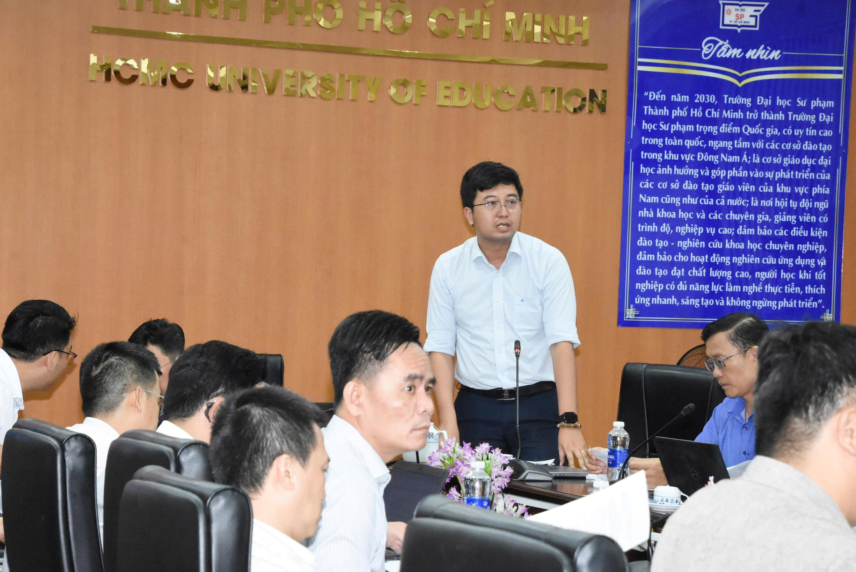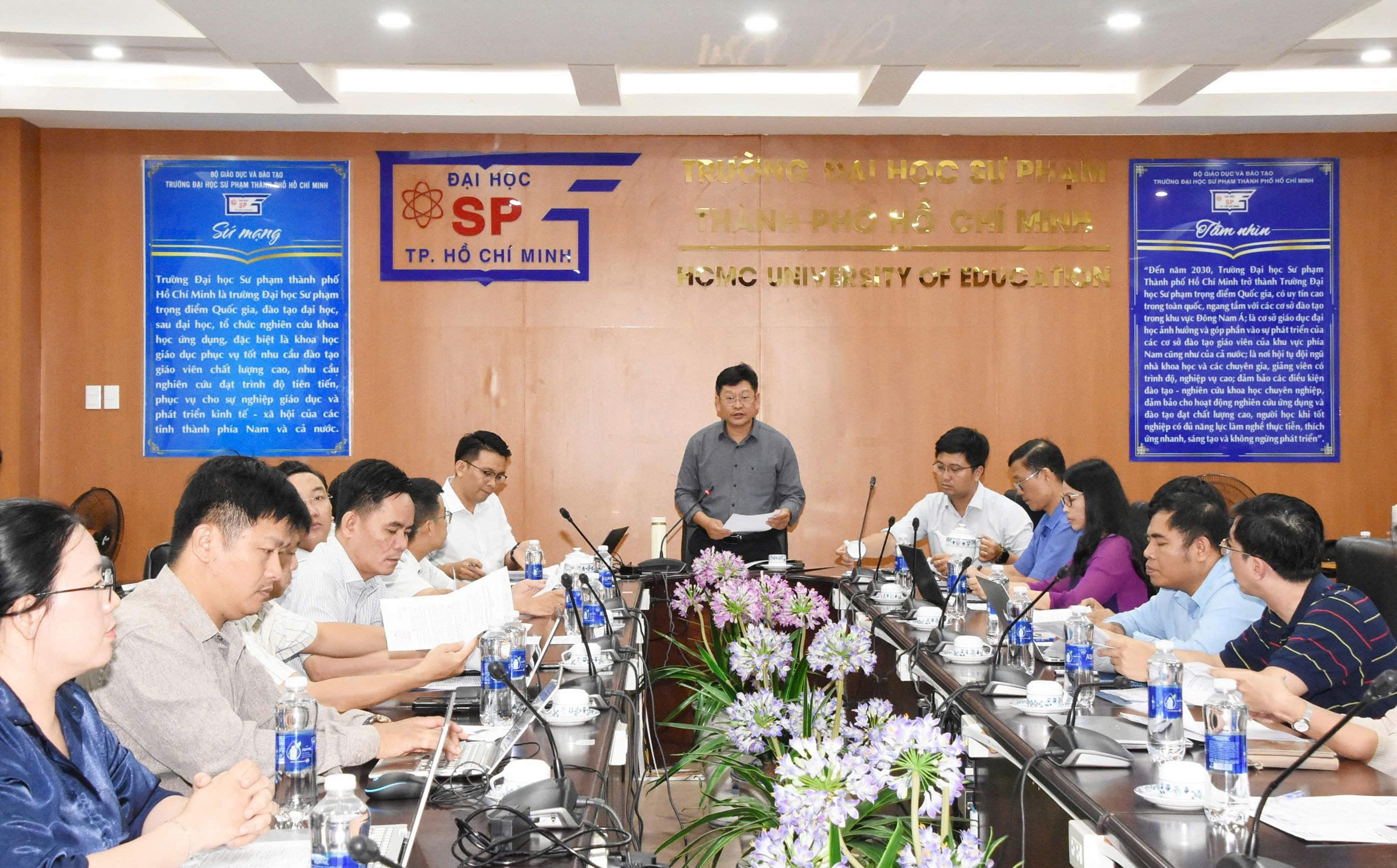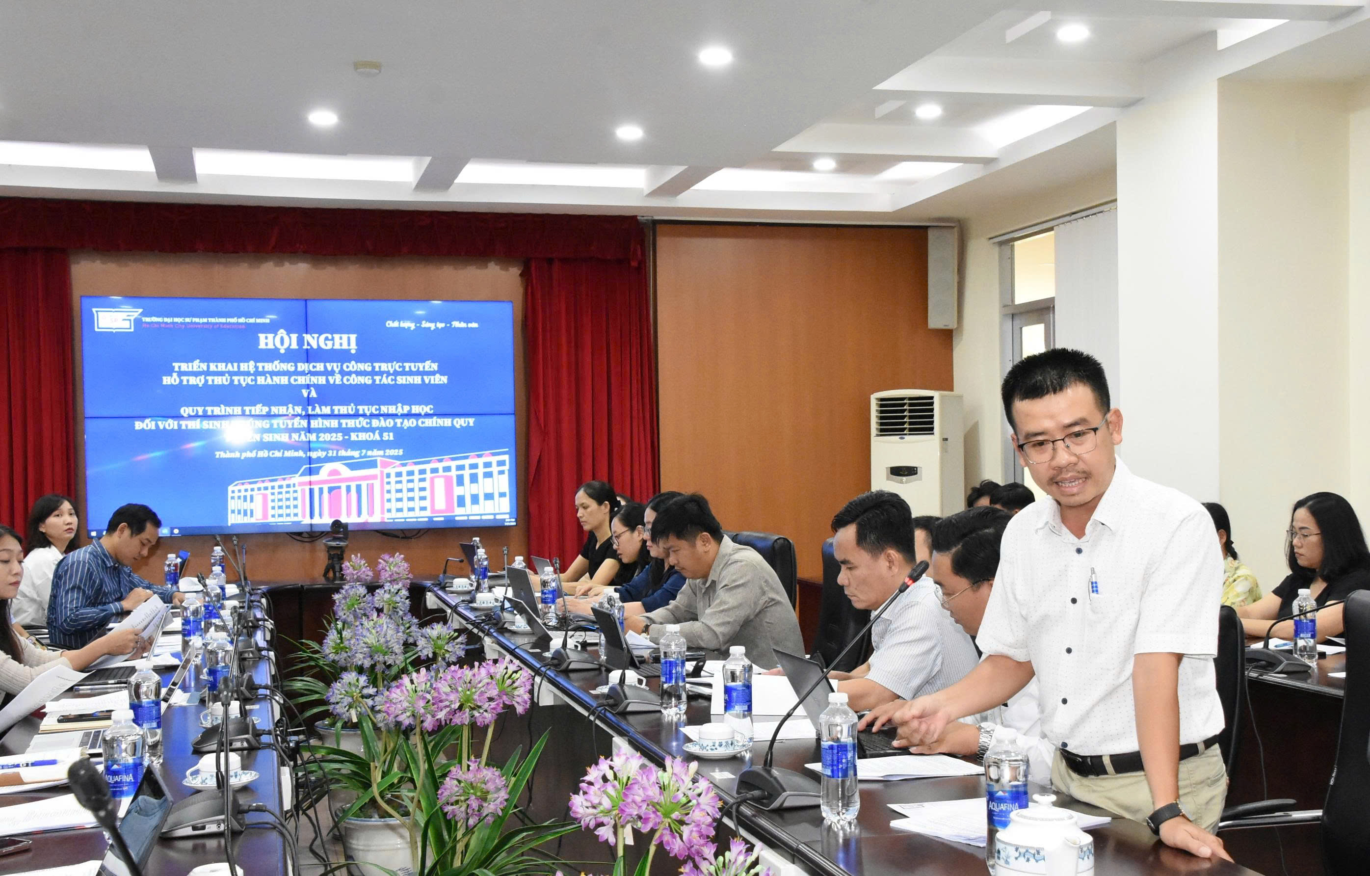 Chiều ngày 31/7/2025, Trường Đại học Sư phạm Thành phố Hồ Chí Minh tổ chức Hội nghị triển khai hệ thống dịch vụ công trực tuyến hỗ trợ thủ tục hành chính sinh viên và chuẩn bị tiếp nhận sinh viên Khóa 51 năm 2025. Hội nghị được tổ chức tại Phòng họp C.207 với sự chủ trì TS. Cao Anh Tuấn - Phó Hiệu trưởng Nhà trường và sự tham dự của đại diện lãnh đạo các Khoa, Phân hiệu và các phòng ban chức năng trong toàn Trường.