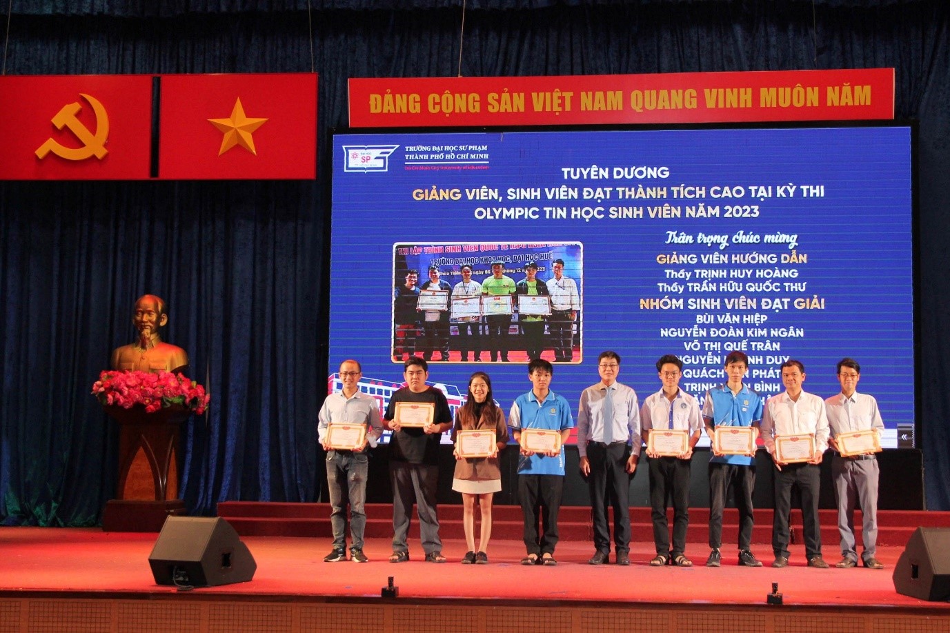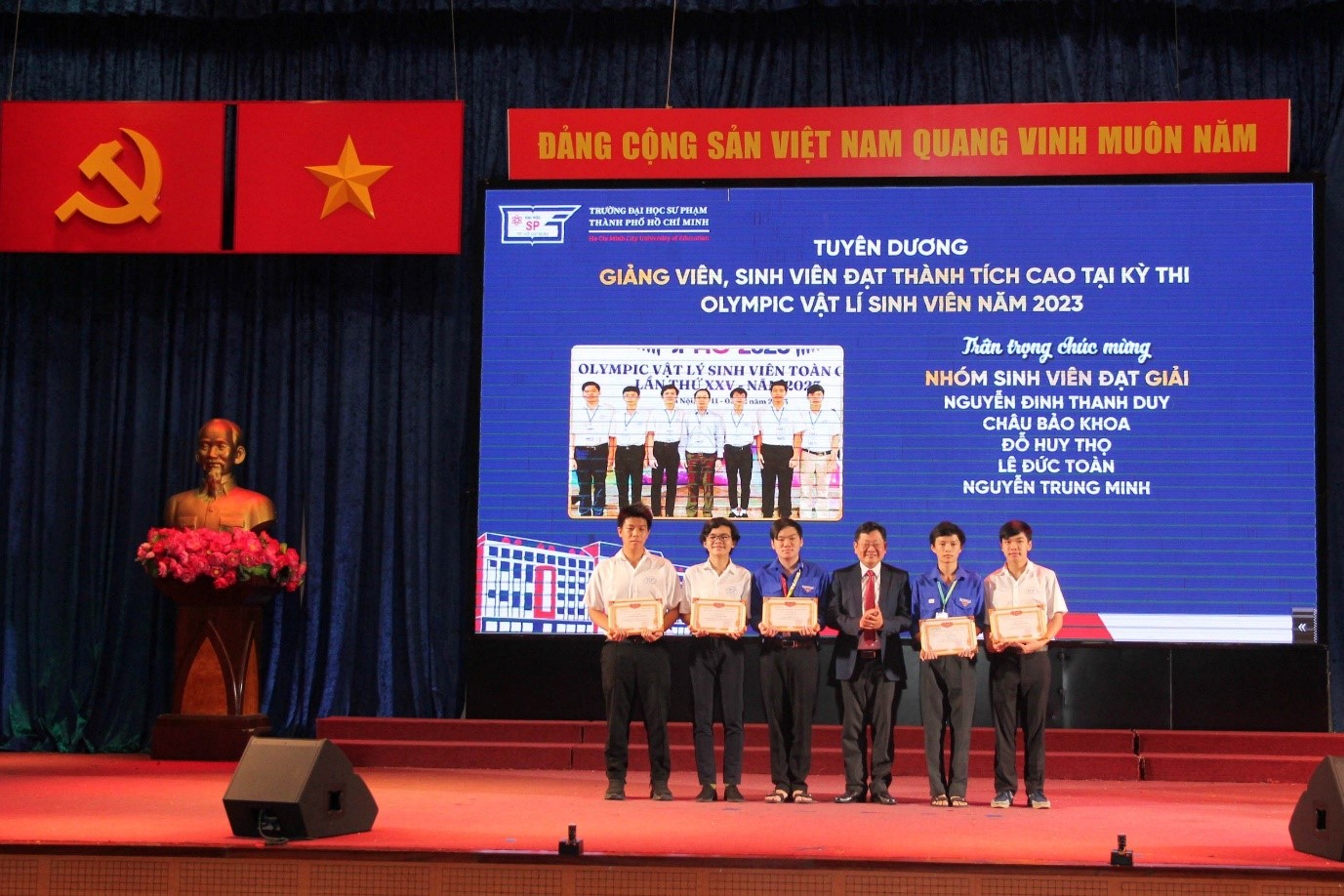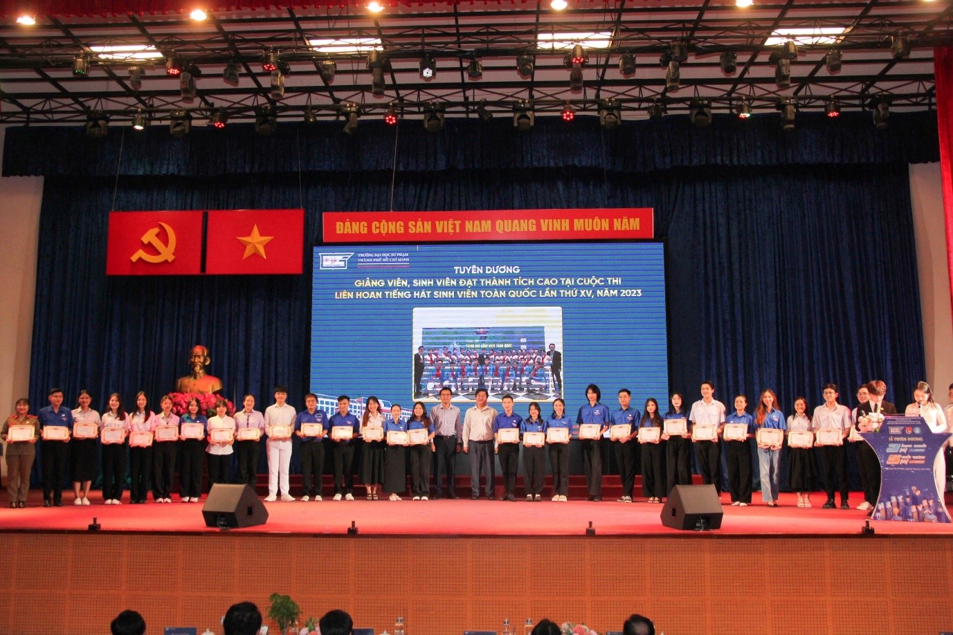 Tại buổi lễ, Trường đã vinh danh các giảng viên và sinh viên có thành tích xuất sắc trong học tập, văn hóa văn nghệ và thể dục thể thao, bao gồm: 06 cá nhân có thành tích xuất sắc tại Hội thi Olympic các môn văn hóa; 06 cá nhân có thành tích xuất sắc tại Kỳ thi Olympic Vật lý sinh viên toàn quốc năm 2023; 13 cá nhân đạt thành tích xuất sắc tại kỳ thi Olympic Hóa học sinh viên toàn quốc năm 2023; 08 cá nhân đạt thành tích xuất sắc tại Cuộc thi Olympic Tin học sinh viên toàn quốc năm 2023; 05 cá nhân đạt thành tích xuất sắc tại Cuộc thi Olympic Tiếng Anh sinh viên toàn quốc năm 2023; 03 cá nhân đạt thành tích xuất sắc tại Cuộc thi Olympic Tiếng Nga sinh viên toàn quốc năm 2023; 29 cá nhân đạt thành tích xuất sắc tại Cuộc thi Liên hoan Tiếng hát sinh viên toàn quốc lần thứ XV, năm 2023 và 12 cá nhân đạt thành tích xuất sắc tại Giải Bóng rổ sinh viên toàn quốc năm 2023.