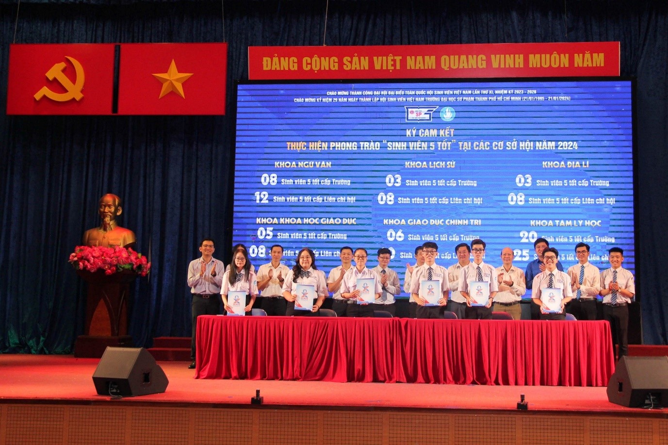 Tại buổi Lễ tuyên dương, Liên Chi hội các đơn vị đã thực hiện ký cam kết về việc thực hiện phong trào “Sinh viên 5 tốt” tại các cơ sở, đồng thời, đăng ký chỉ tiêu phấn đấu số lượng đạt sinh viên 5 tốt trong năm 2024. Cũng tại khuôn khổ chương trình, Hội Sinh viên Việt Nam Trường.