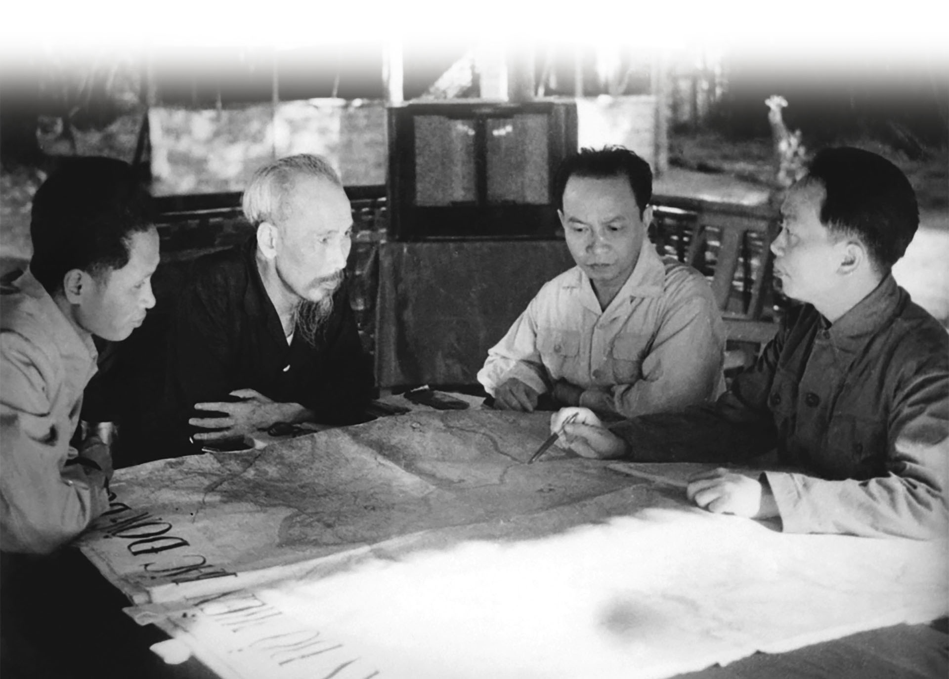 Chủ tịch Hồ Chí Minh và các đồng chí trong Ban Thường vụ Trung ương Đảng họp quyết định mở Chiến cuộc Đông Xuân 1953-1954 và Chiến dịch Điện Biên Phủ.