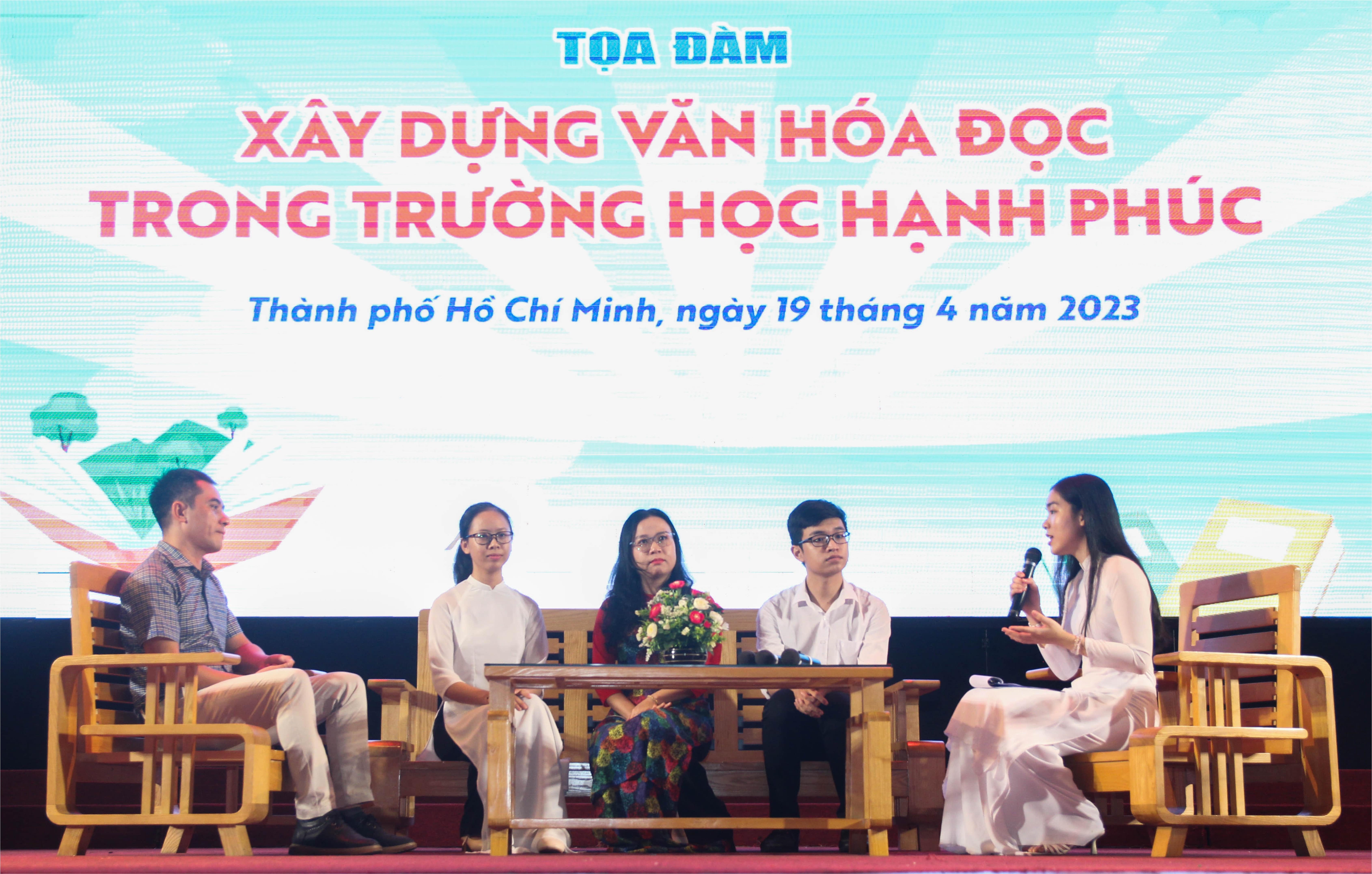 Cũng trong Chương trình phát động, các bạn học sinh, sinh viên đã được tiếp cận với khái niệm “Trường học hạnh phúc” và ý nghĩa của việc đọc sách trong quá trình xây dựng “Trường học hạnh phúc” do ThS. Mai Mỹ Hạnh - Phó Trưởng khoa Tâm lý học chia sẻ; tham gia các trò chơi tìm hiểu về ý nghĩa của “Ngày Sách và Văn hóa đọc Việt Nam”, lợi ích của việc đọc sách trong phát triển năng lực bản thân, lắng nghe chia sẻ của các nhà văn, chuyên gia và sinh viên trong toạ đàm “Xây dựng văn hoá đọc trong trường học hạnh phúc”.
