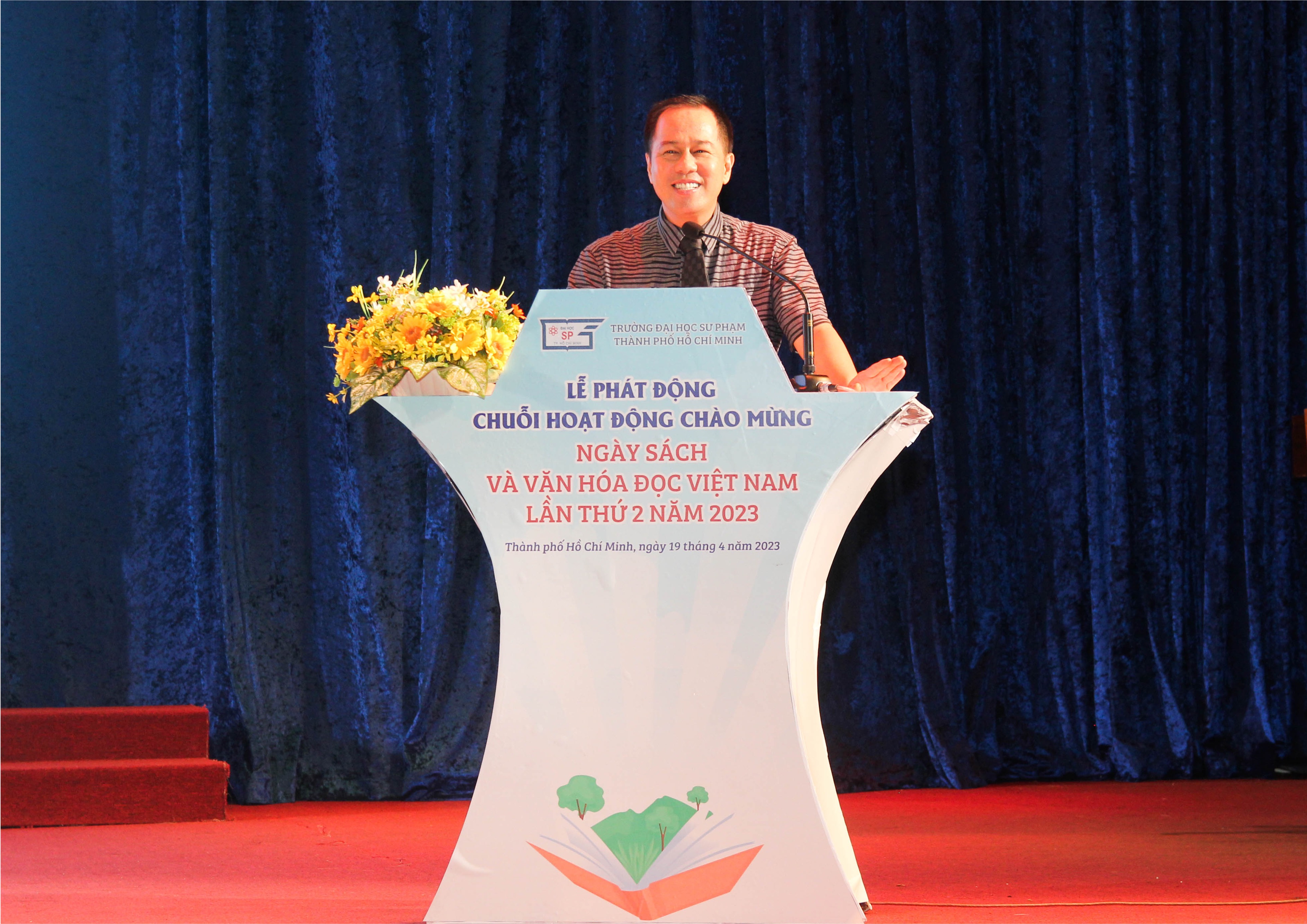 Sáng ngày 19/4/2023, tại Hội trường B, Trường Đại học Sư phạm Thành phố Hồ Chí Minh tổ chức Chương trình phát động chuỗi hoạt động hưởng ứng Ngày Sách và Văn hóa đọc Việt Nam năm 2023 với thông điệp: “Sách: Nhận thức - Đổi mới - Sáng tạo”; “Sách cho tôi, cho bạn”.
