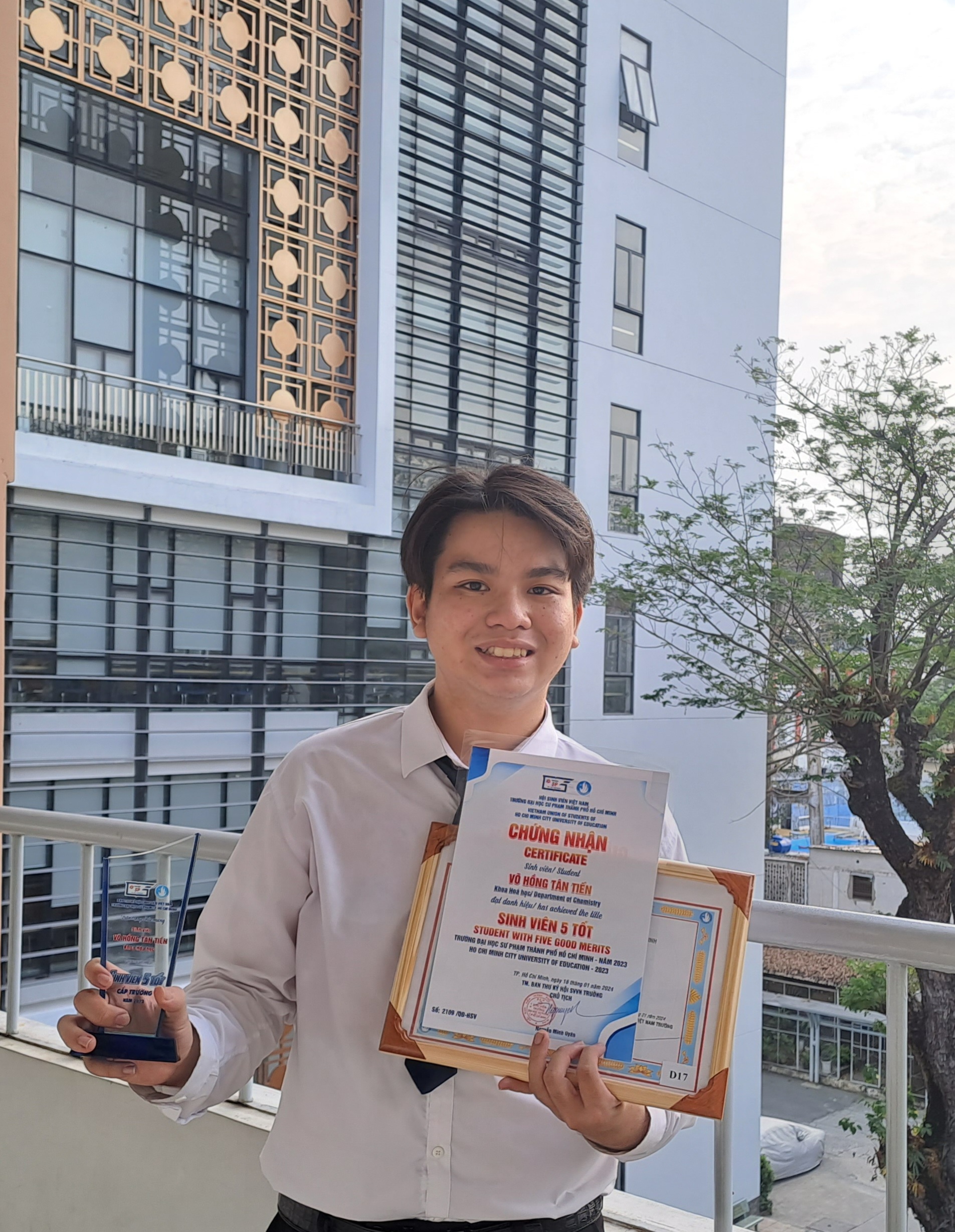 Nhờ chuyên môn vững vàng và trải nghiệm sâu sắc, Tân Tiến đã gặt hái nhiều thành quả đáng ngưỡng mộ. Từ thành tích xuất sắc trong Công tác Hội và phong trào sinh viên đến danh hiệu “Sinh viên 5 tốt”, Đoàn viên ưu tú. Niềm đam mê nghiên cứu, sáng tạo đã giúp Tiến đạt Giải nhất – Hội thi Thiết kế đồ dùng dạy học từ vật liệu tái chế Hưởng ứng Ngày Môi trường thế giới và Tháng hành động vì môi trường năm 2023. Cùng với nhiều giải thưởng và thành tích xuất sắc khác. Có thể nhận thấy Tân Tiến là một chàng trai “toàn diện” ở mọi lĩnh vực.