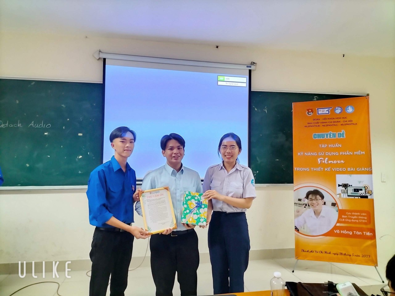 “Mình đã trở thành thành viên Câu lạc bộ Ứng dụng STEM, đó là khoảnh khắc rất đáng quý nhất của mình, lúc đó mình rất sợ không được vào CLB nhưng mình đã trúng tuyển và mình đã đem niềm tự hào này nói với mọi người. CLB, Đoàn khoa Hoá học và Liên Chi hội khoa Hoá học đã giúp mình rất nhiều, tiếp thu được các kỹ năng và thực tế là mình đã ứng dụng rất nhiều trong việc dạy học, tập huấn cho các bạn sinh viên khóa dưới. NCKH đã thúc đẩy cho mình niềm say mê, yêu thích về chiều sâu của các kiến thức khoa học và mình rất ngưỡng mộ trước những công trình nghiên cứu của những con người vĩ đại”, Tiến chia sẻ.