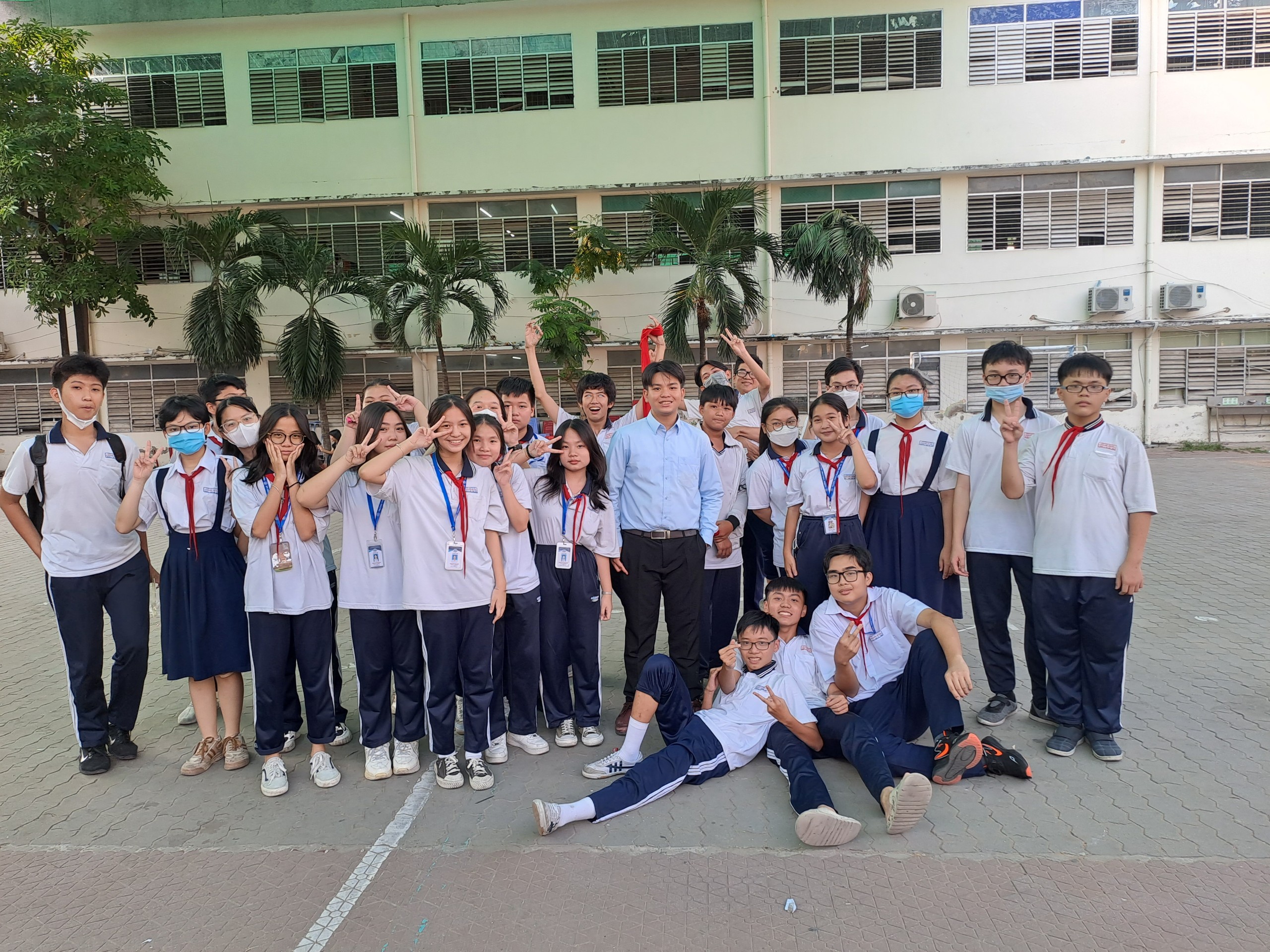 Tân Tiến cùng các bạn học sinh trong đợt thực tập Sư phạm - Ảnh: nhân vật cung cấp